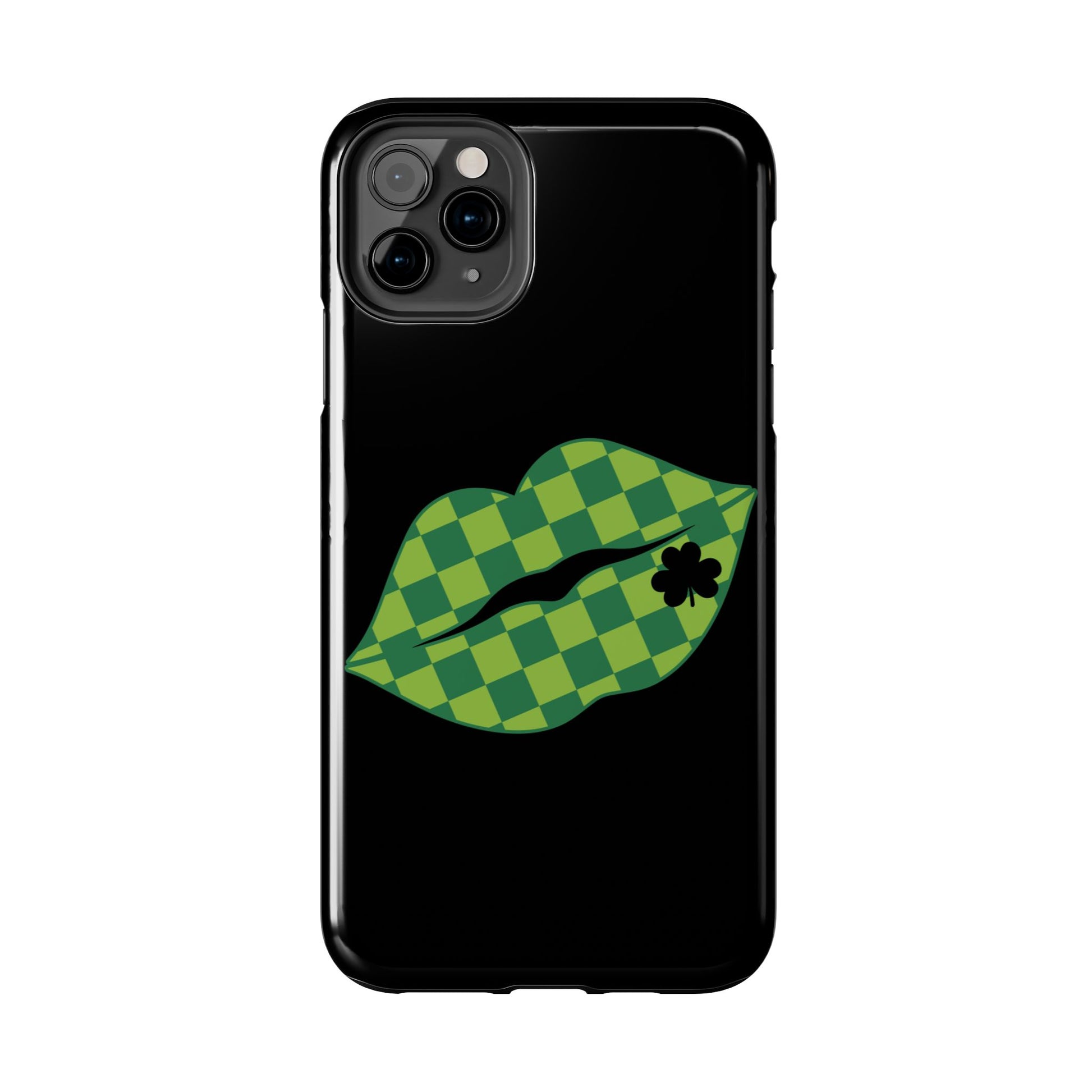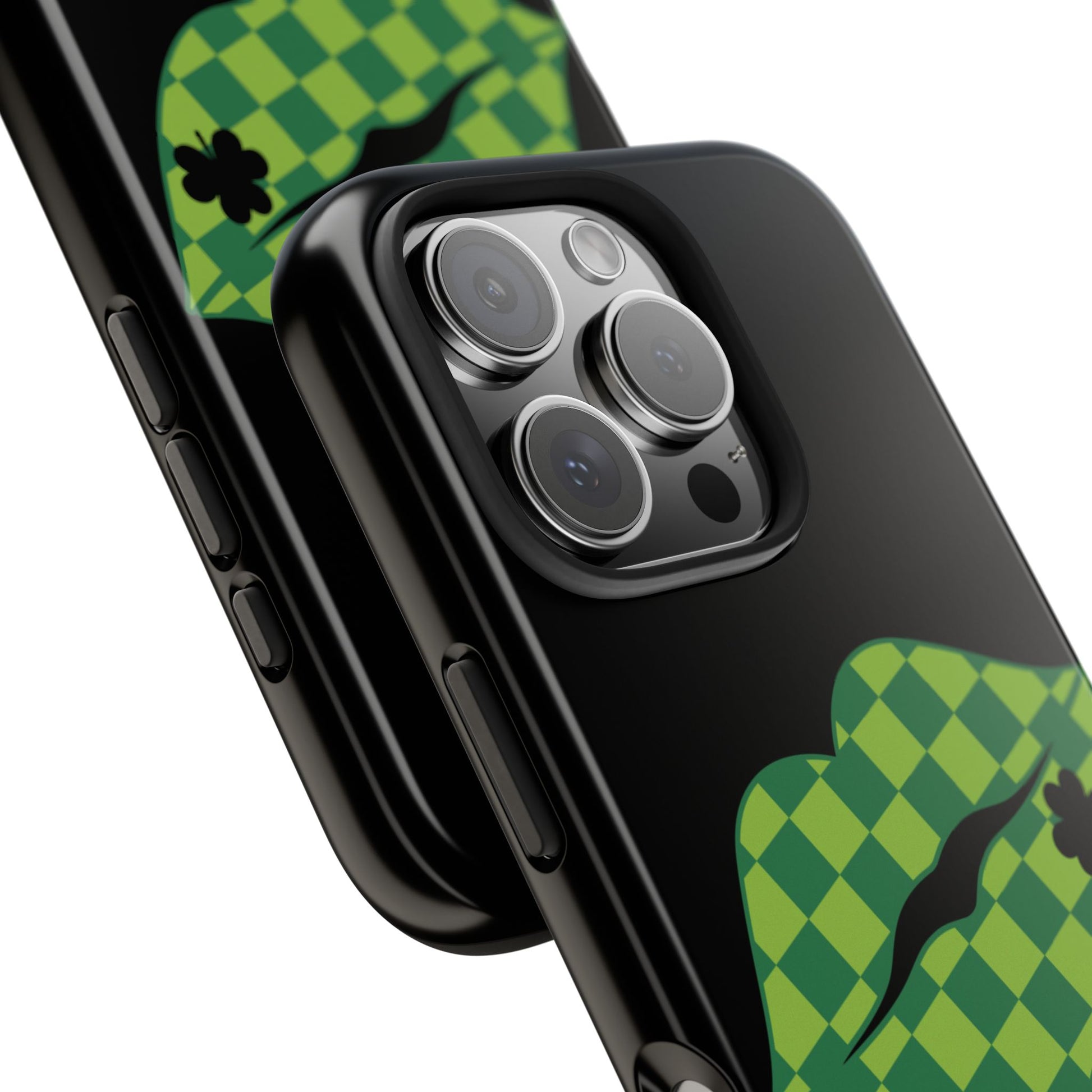 Make a bold statement this St. Patrick’s Day with our Irish Kiss phone case! 🍀💋 Featuring vibrant green lips and a lucky shamrock on a sleek black background, this design is equal parts edgy and festive.