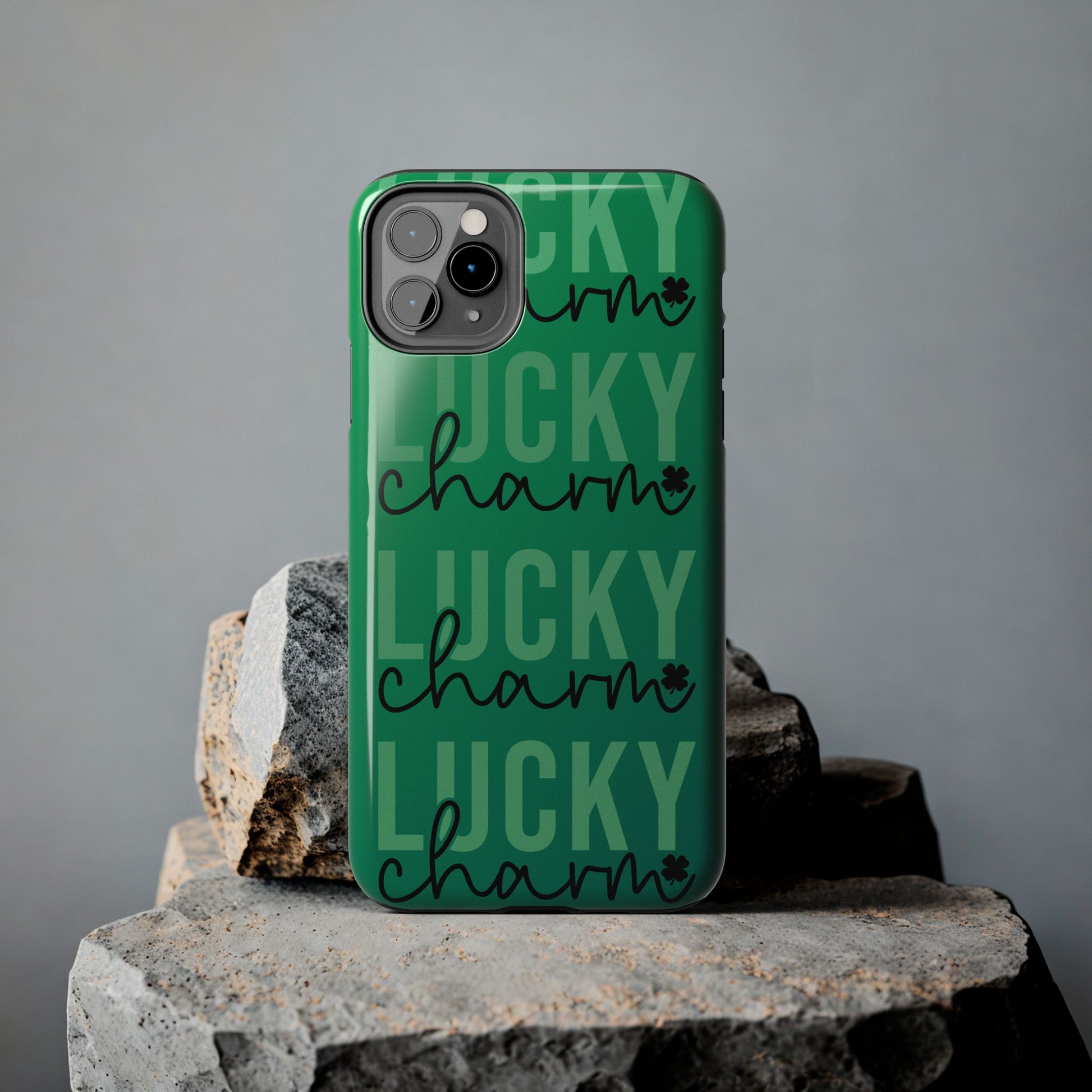 Protect your phone in style with our Lucky Charms St. Patty's Phone Case! The vibrant green color and the playful quote "Lucky charm" make it the perfect accessory for the holiday. Don't leave your luck to chance, grab this quirky case today!