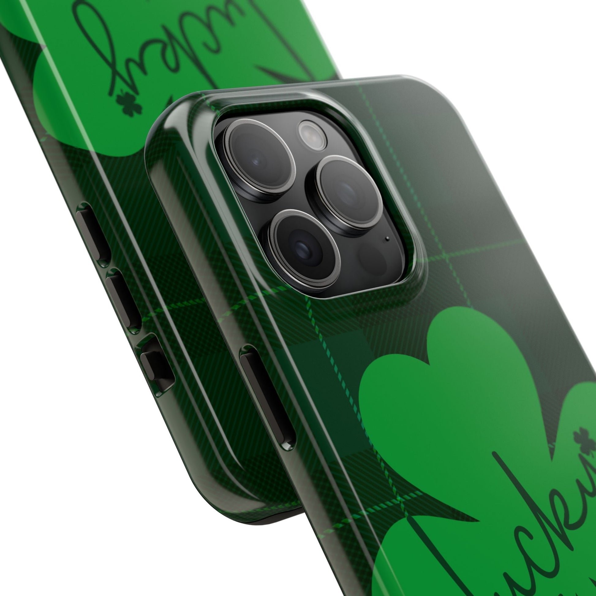 Embrace your Irish luck with our Lucky-Phone Case! This green plaid case features the word LUCKY. Protects your phone with style (and a pinch of shamrock magic). Compatible with iPhone. Don't push your luck, get yours today!